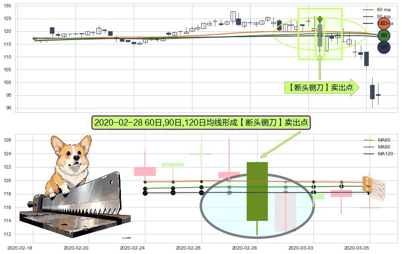 ⚀ 2020-02-28日显现 60日-90日-120日均线 【断头铡刀】卖出点 看空信号,后市看跌,卖出