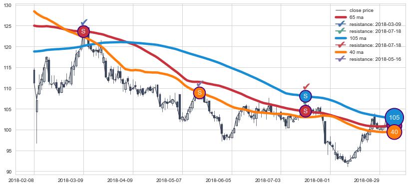 ⚃ 在破位点附近ma走势已有下垂迹象,稍后的走势中ma下降趋势明显,信号【可信度高】