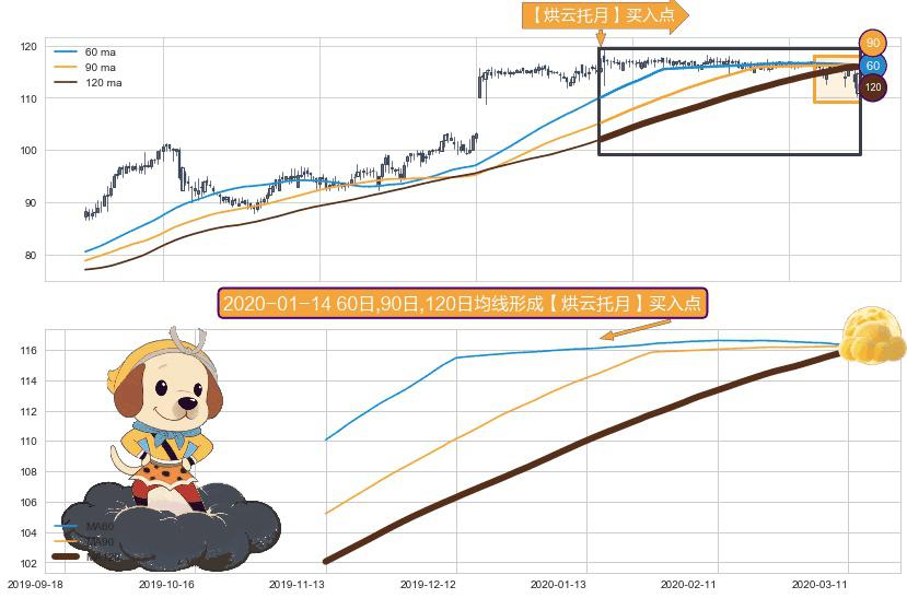 ⚀ 2019-11-13日-2020-03-13日显现 60日-90日-120日均线 【烘云托月】买入点 看多信号,后市看涨,买入
