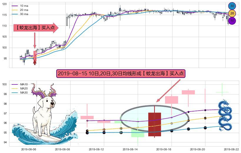 ⚀ 2019-08-15日显现 10日-20日-30日均线 【蛟龙出海】买入点 看多信号,后市看涨,买入