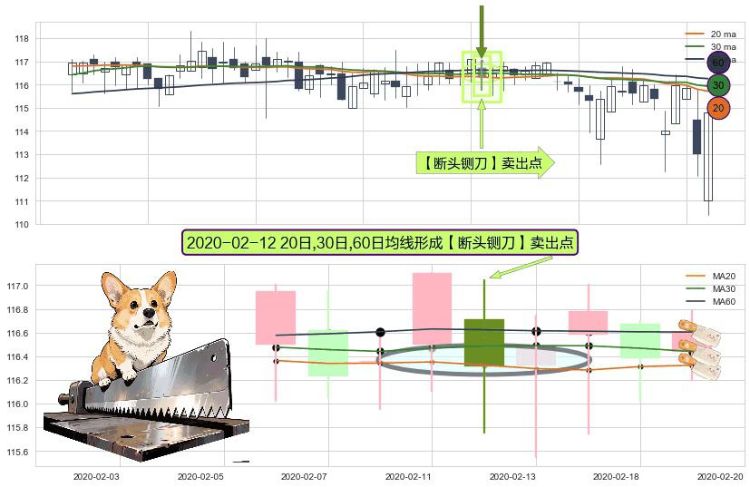 ⚀ 2020-02-12日显现 20日-30日-60日均线 【断头铡刀】卖出点 看空信号,后市看跌,卖出
