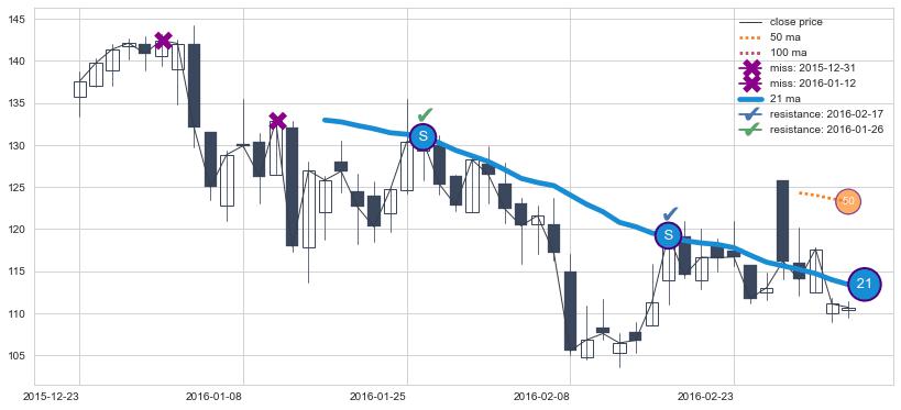 ⚃ 在破位点附近ma走势明显平稳迹象,稍后的走势中ma下垂迹象也出现,信号【可信度中等偏上】