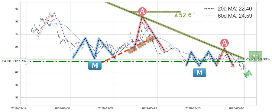 ➢ 【已确认突破】最后价格:20.94与最小【整理】第一目标价格→(2020-04-06: 17.70 )相较: 下跌空间【中等】