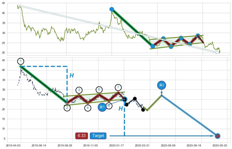 ➣ 最小中继整理跌幅→𝐇: 5.40 (上平行阻力线与下平行支撑线的垂直距离)
