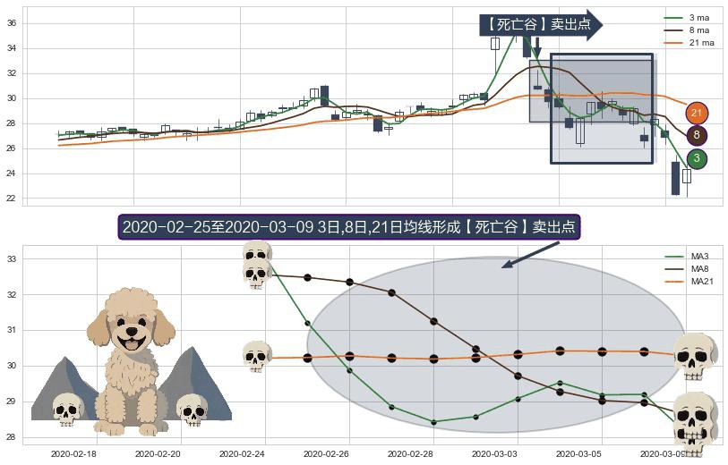 ⚀ 2020-02-26-日至2020-03-09-日显现 3日-8日-21日均线 【死亡谷】卖出点 看空信号,后市看跌,卖出