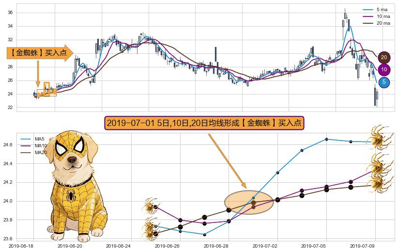 ⚀ 2019-07-01日显现 5日-10日-20日均线 【金蜘蛛】买入点 看多信号,后市看涨,买入