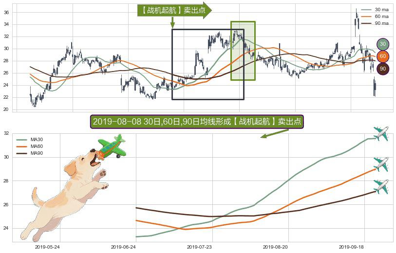 ⚀ 2019-06-24日-2019-09-23日显现 30日-60日-90日均线 【战机起航】卖出点 看空信号,后市看跌,卖出