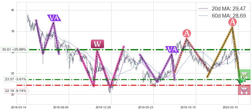 ♘ 支撑价格位22.18,可信任强度67.07%,距离最后交易2020-03-13形成的收盘价格24.30相差 -8.74%