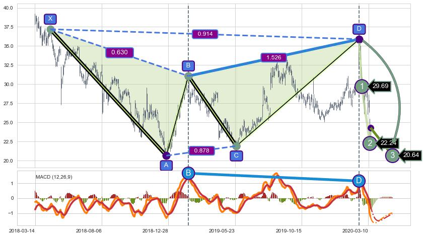 ➢ 谐波价格D点比B点高 ⤴,【MACD】指标D点比B点低 ⤵️