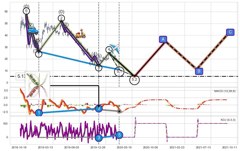 ➣ 5.1: 预测当前第5浪位置(2020-03-12, 10.92),仍然有下跌空间