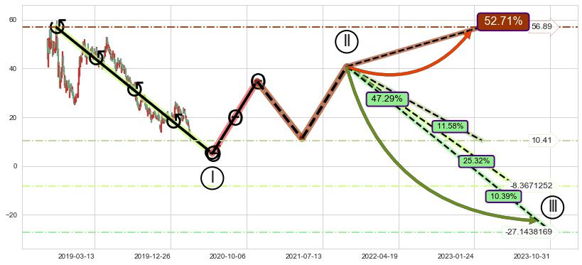 ➣ 大趋势循环浪继续向下概率47.29%