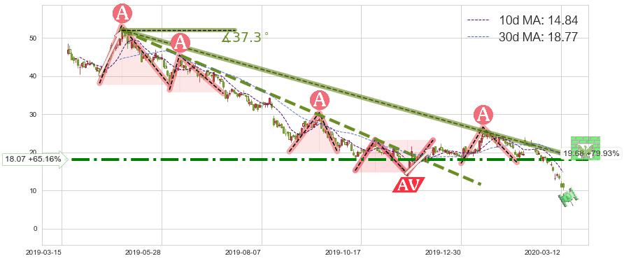 ♘ 阻力价格位18.07,可信任强度80.06%,距离最后交易2020-03-13形成的收盘价格10.94相差 +65.16%