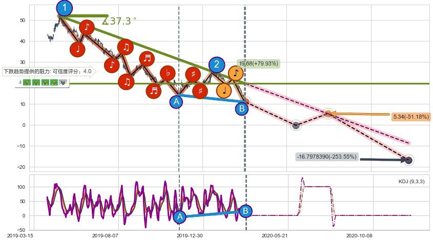从2019-04-29至2020-03-13,共包含222个交易日,阶段股价下跌-131.10%,阶段股价变动位移路程比: 1 : 5,下跌趋势角度: 37.3
