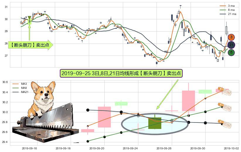 形态多维评估: ⚀ 2019-09-25日显现 3日-8日-21日均线 【断头铡刀】卖出点 看空信号,后市看跌,卖出