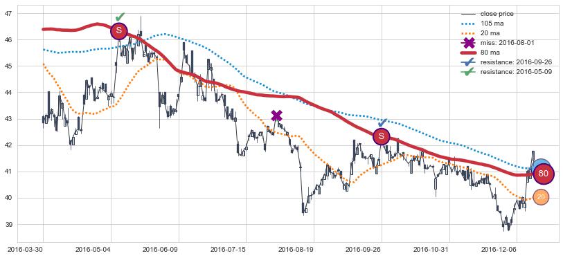 下跌趋势2016-03-30-2016-12-14,均线80确认关键阻力2处