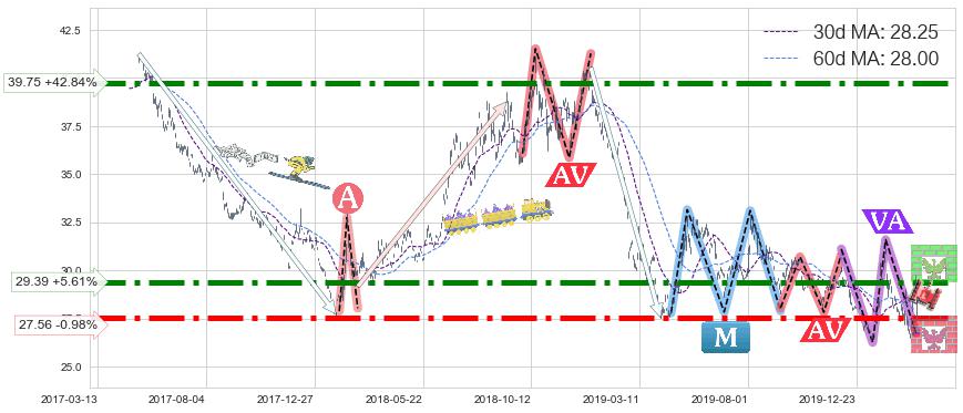 ♘ 阻力价格位29.39,可信任强度85.23%,距离最后交易2020-03-13形成的收盘价格27.83相差 +5.61%