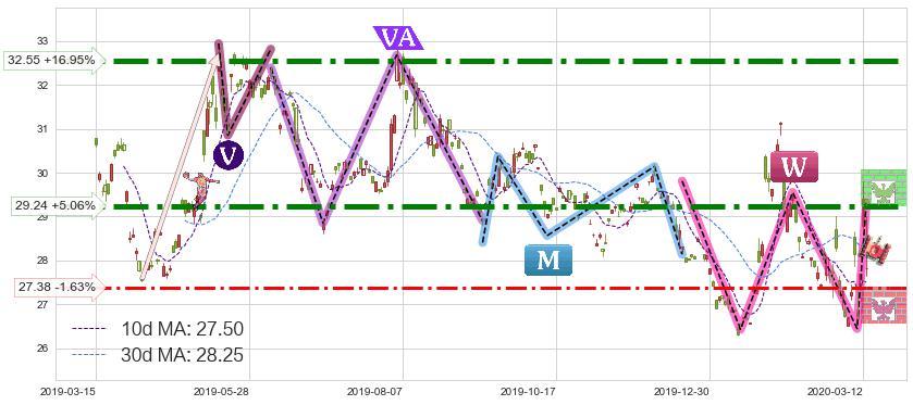 ♘ 阻力价格位29.24,可信任强度90.73%,距离最后交易2020-03-13形成的收盘价格27.83相差 +5.06%