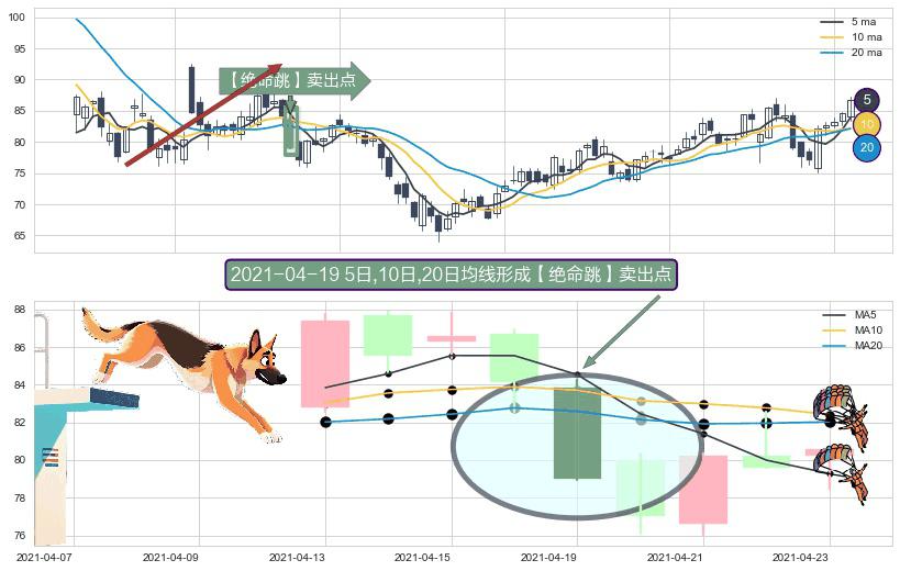 形态多维评估: ⚀ 2021-04-19日显现 5日-10日-20日均线 【绝命跳】卖出点 看空信号,后市看跌,卖出