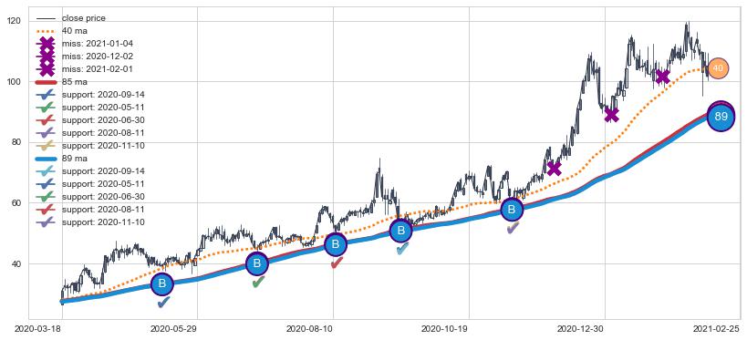 上涨趋势2020-03-18-2021-02-25,均线89, 85确认关键支撑5处