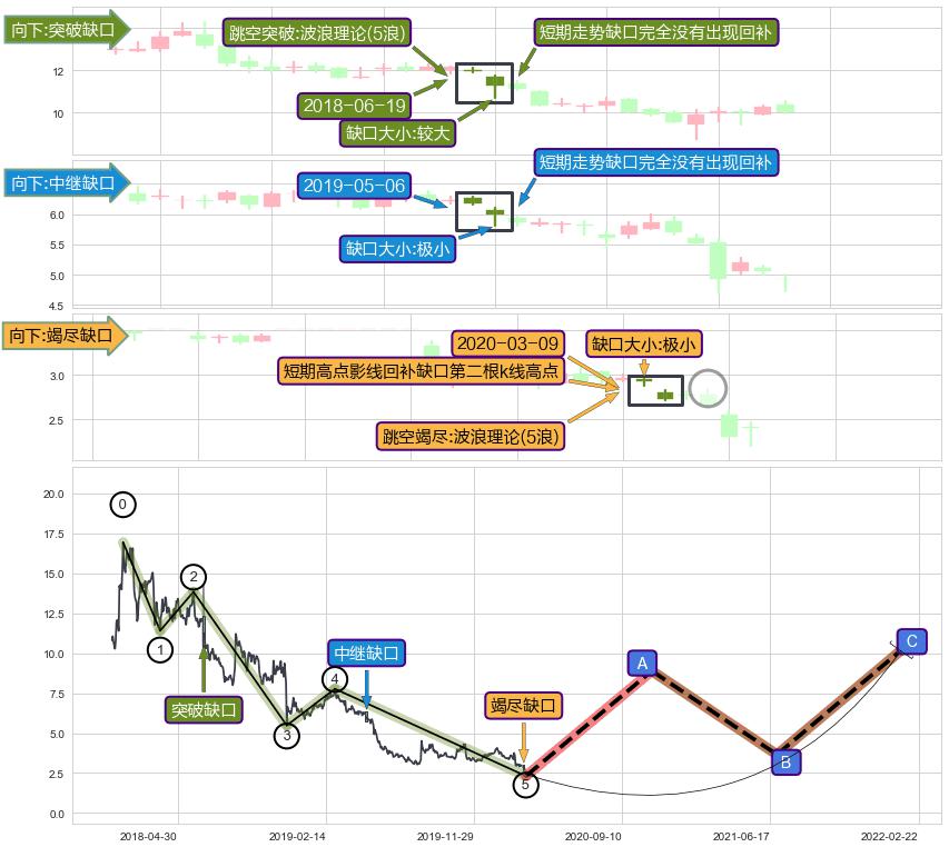 ➣ 中继缺口在突破缺口后再次向下跳空,趋势得到加固