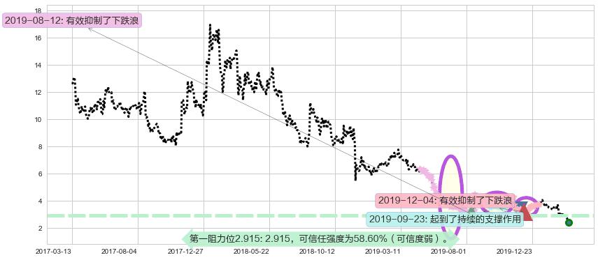 ♘ 在最后的下跌阶段2018-01-11至2020-03-13,存在 持续未破位的阻力位 ,阻力价格3.197,可信任强度81.16%,其距离最后价格2.400相差 +33.19%