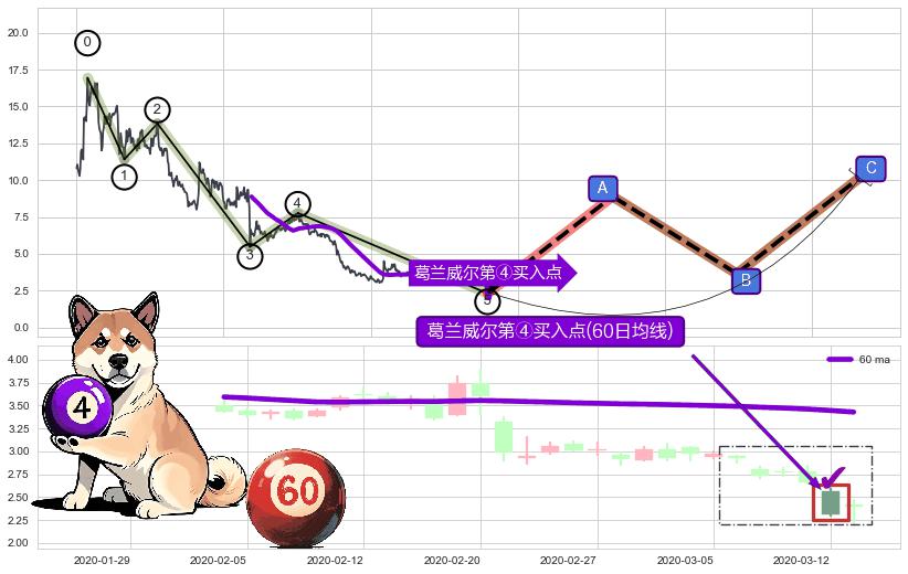 | 2 🅚:【高山滑雪】买入点 ➕ 🌊:波浪理论猜想下跌浪5已形成,猜想后续形成abc反弹上涨(均值回复) ☞ 看多信号 ⇥ 【均线】交织【图形】⇥ 综合量化分数: 52 | > |
