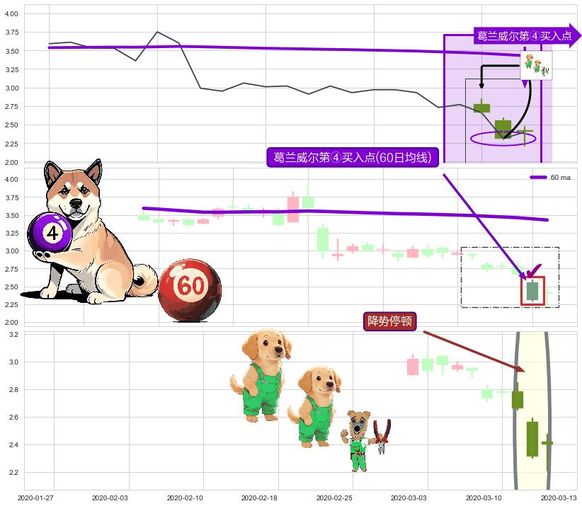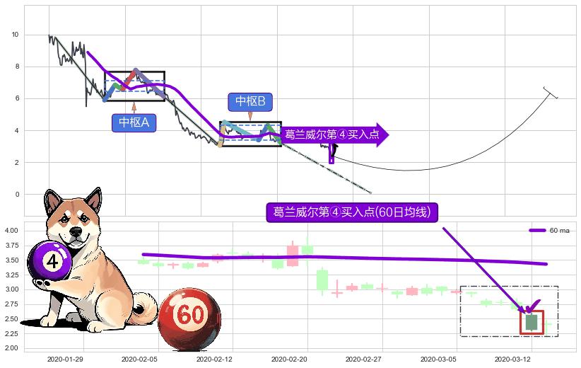 ➢ 高点影线(2020-03-11: 2.846 )→回踩→第二根k线高点(2020-03-09: 2.830 )