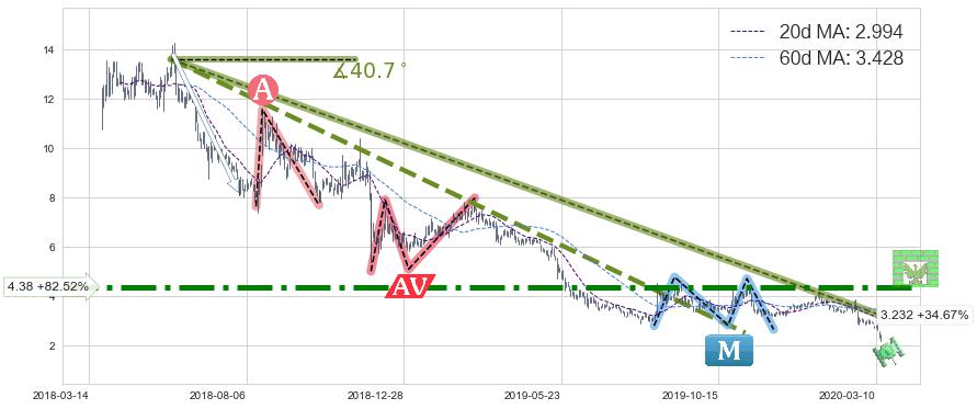 ♘ 阻力价格位4.38,可信任强度87.00%,距离最后交易2020-03-13形成的收盘价格2.400相差 +82.52%