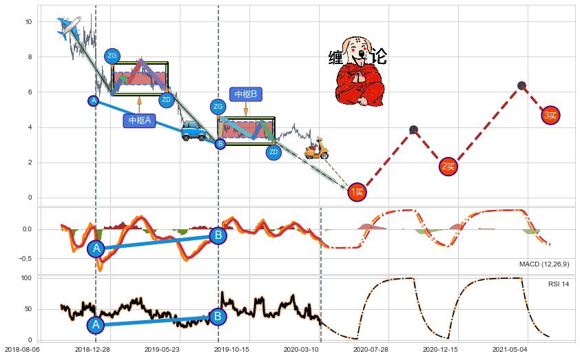 | 2 🅚:【高山滑雪】买入点 ➕ ☯️:缠论中枢点下降缠中枢AB形成后猜想拐点1买即将出现,随后猜想后续持续拉升(均值回复) ☞ 看多信号 ⇥ 【均线】交织【图形】⇥ 综合量化分数: 52 | > |