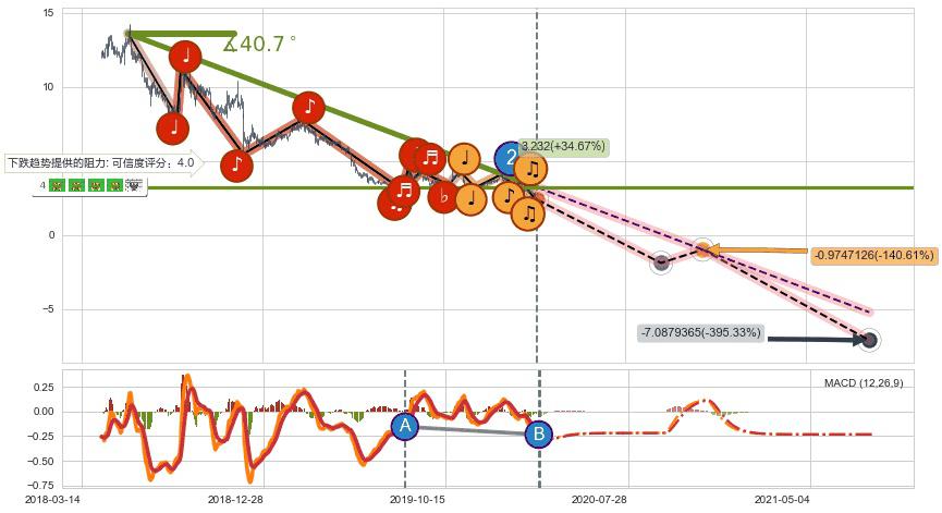 ♘ 在最后的下跌阶段2018-05-29至2020-03-13,存在 持续未破位的阻力位 ,阻力价格3.232,可信任强度84.83%,其距离最后价格2.400相差 +34.67%