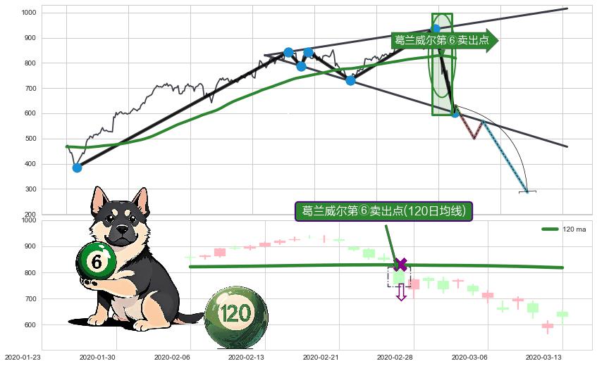 ➣ AI智能【预测卖2】: 保守型 卖点→(2020-04-14: 568.71 )预测突破后的【回抽确认】