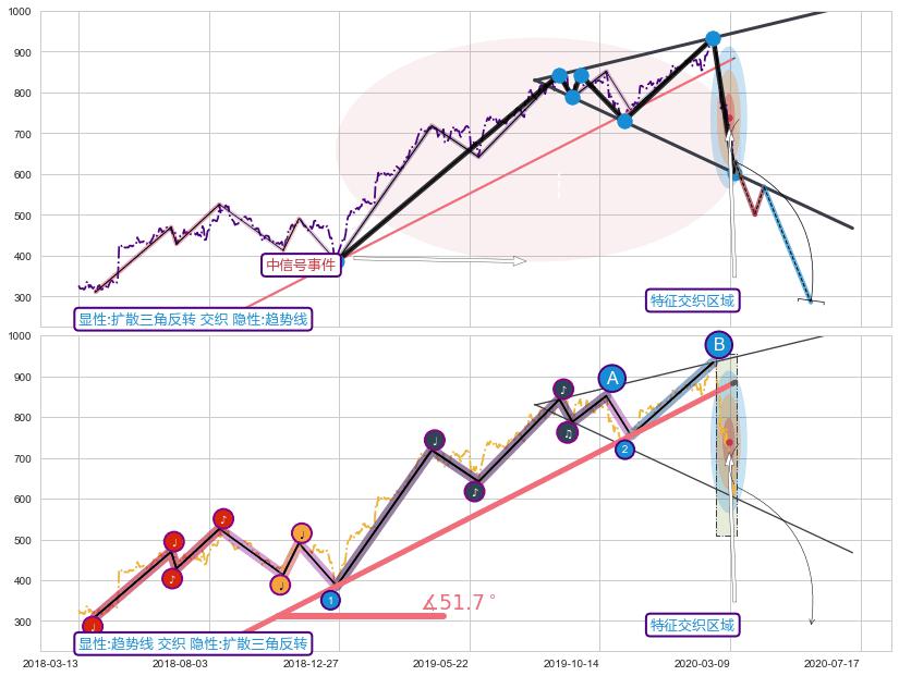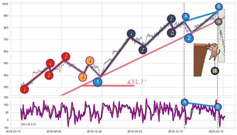 ✂️ 2018-04-02-2020-03-11上升趋势存在反转[风险],其原上升趋势的支撑位(885.22)已破位[强阻力信号],原上升趋势角度: 51.7˚