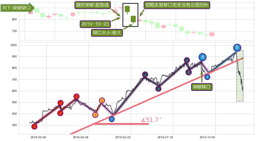 ➢ 2019-10-23形成:向下跳空【突破】缺口