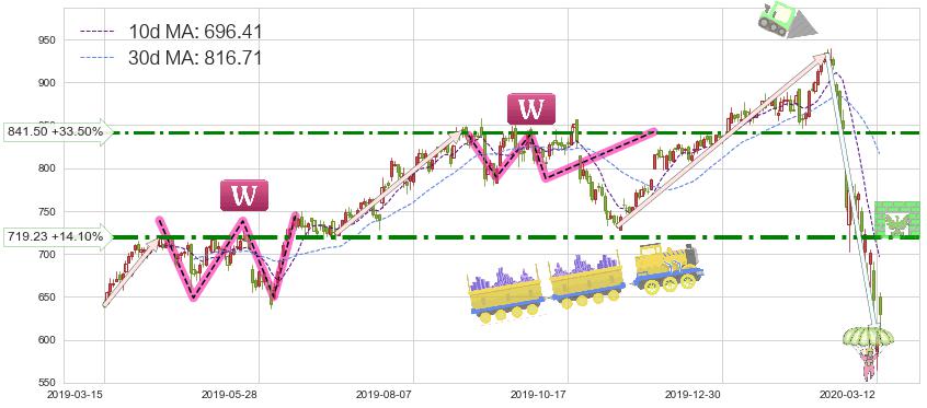 ♘ 阻力价格位841.50,可信任强度63.72%,距离最后交易2020-03-13形成的收盘价格630.36相差 +33.50%