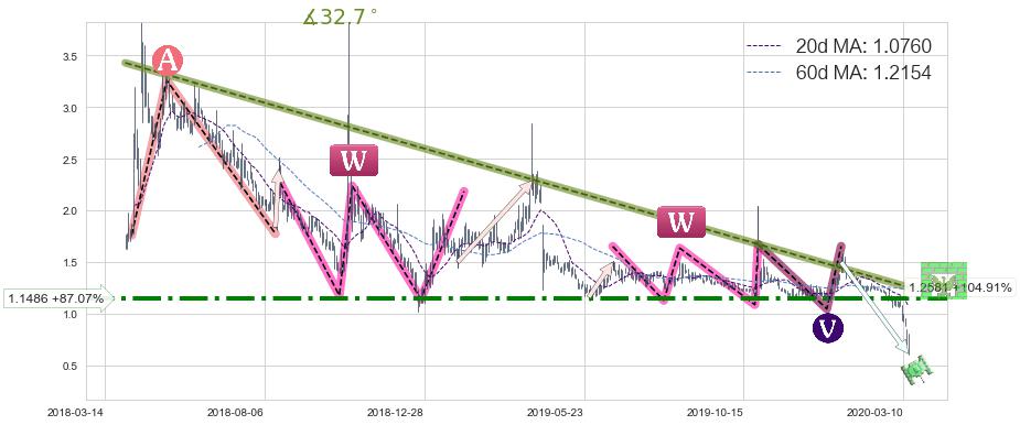 ➢ 【已达成】最小【整理】第一目标价格→(2020-03-12: 0.7600 ), 后续继续【整理】下跌动力依然存在,下跌空间适中
