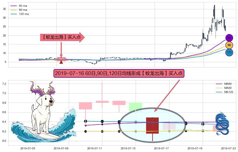 ⚀ 2019-07-16日显现 60日-90日-120日均线 【蛟龙出海】买入点 看多信号,后市看涨,买入