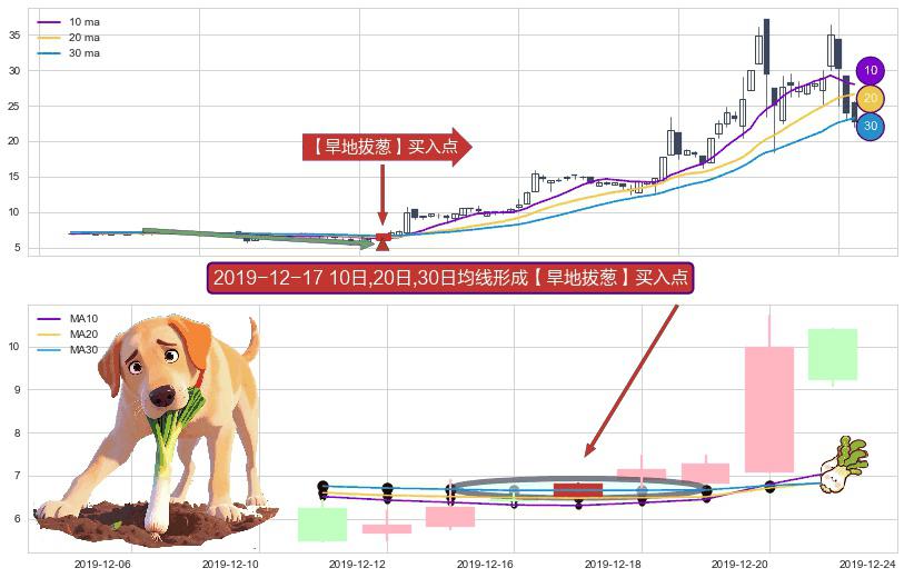 ⚀ 2019-12-17日显现 10日-20日-30日均线 【旱地拔葱】买入点 看多信号,后市看涨,买入