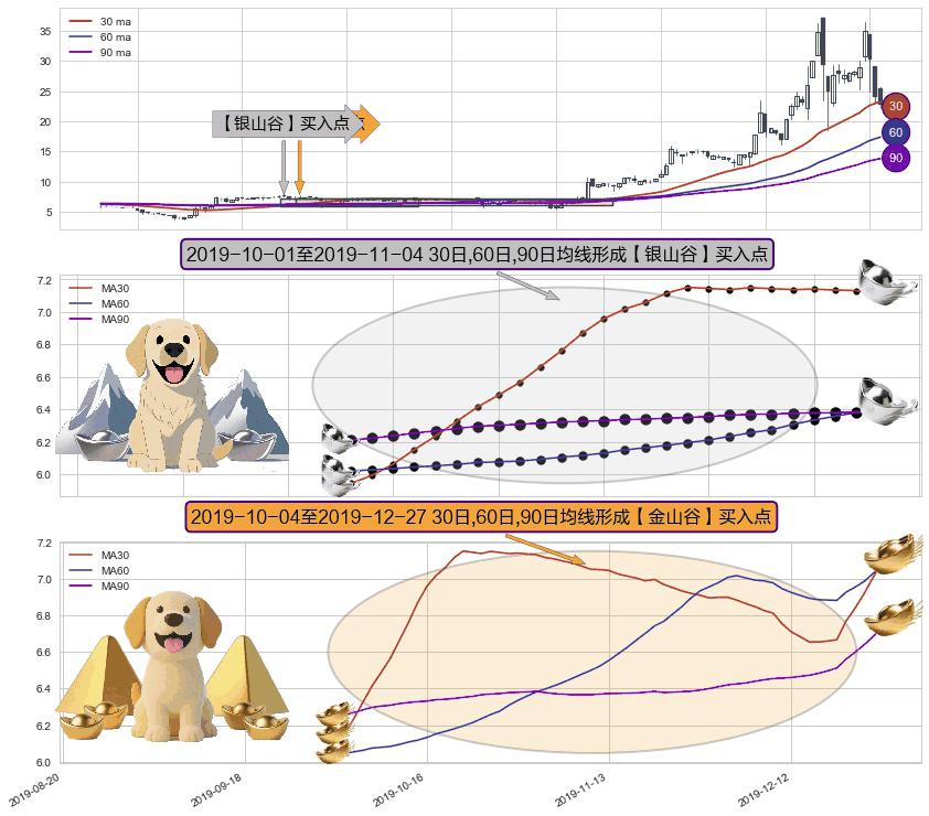 ⚀ 2019-10-07-日至2019-12-27-日显现 30日-60日-90日均线 【金山谷】买入点 其再次确认了买入信号,可靠性更强,买入