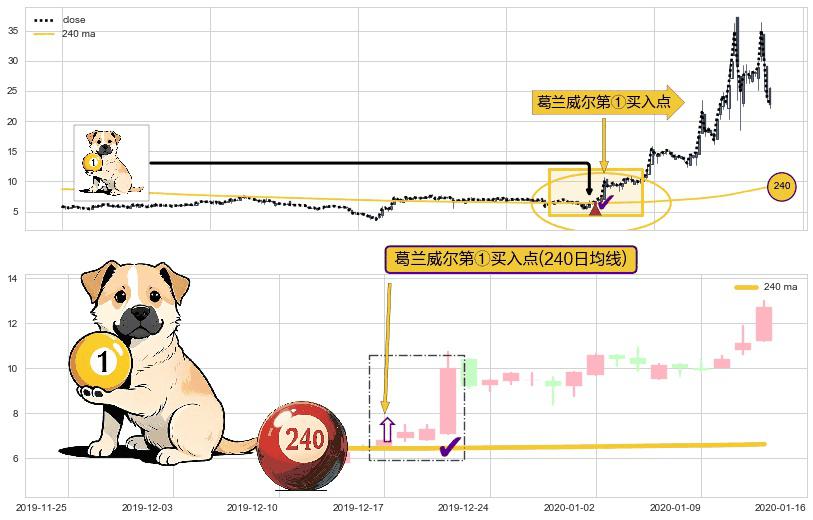 ⚀ 2019-12-17-日显现 葛兰威尔均线 240日均线 第买①入点 走势反转见底信号,后市看涨,买进信号
