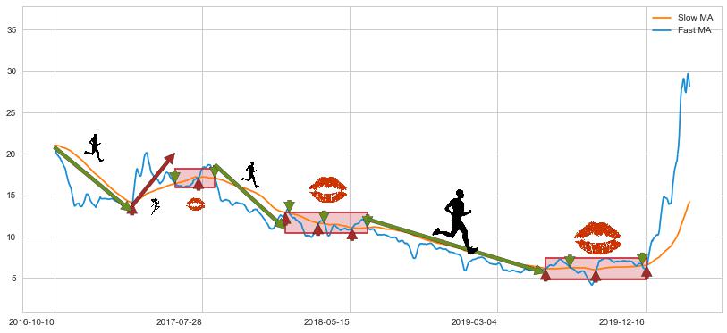 2018-06-19至2019-06-05 慢线与快线呈空头排列, 慢线与快线接触少,无缠绕