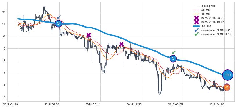 ➢ 最优均线组合共正确确认支撑阻力信号7处,正确确认率 70.00%
