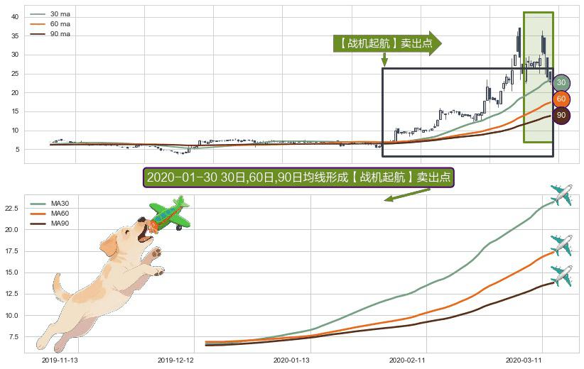 ⚀ 2019-12-16日-2020-03-13日显现 30日-60日-90日均线 【战机起航】卖出点 看空信号,后市看跌,卖出