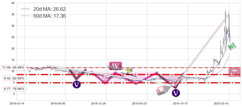 ♘ 支撑价格位11.46,可信任强度46.08%,距离最后交易2020-03-13形成的收盘价格22.68相差 -49.48%