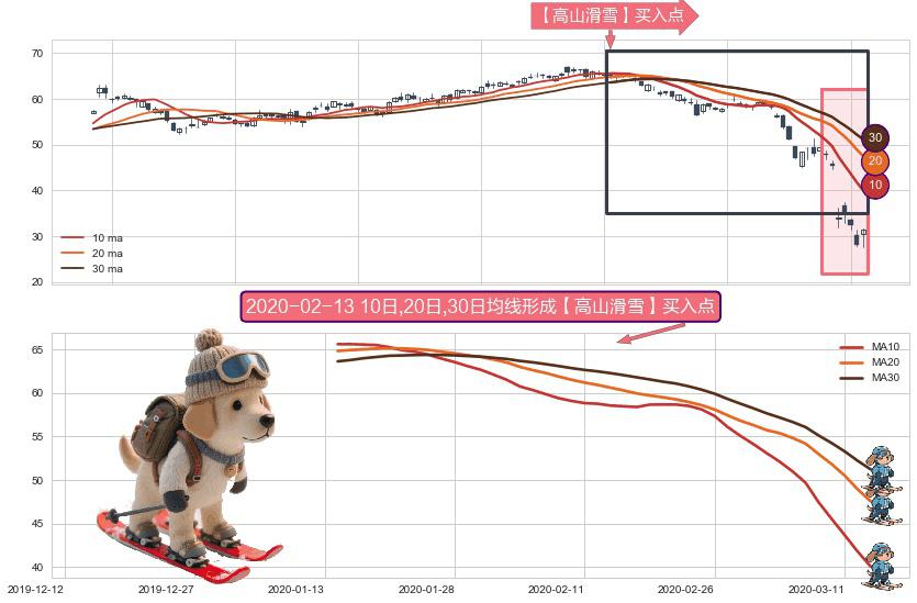 形态多维评估: ⚀ 2020-01-14日-2020-03-13日显现 10日-20日-30日均线 【高山滑雪】买入点 看多信号,后市看涨,买入