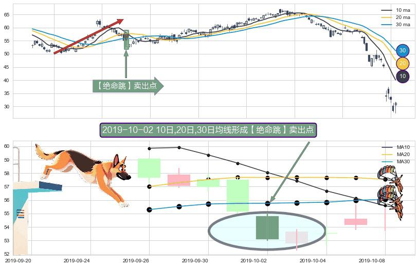 形态多维评估: ⚀ 2019-10-02日显现 10日-20日-30日均线 【绝命跳】卖出点 看空信号,后市看跌,卖出