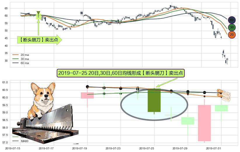 形态多维评估: ⚀ 2019-07-25日显现 20日-30日-60日均线 【断头铡刀】卖出点 看空信号,后市看跌,卖出