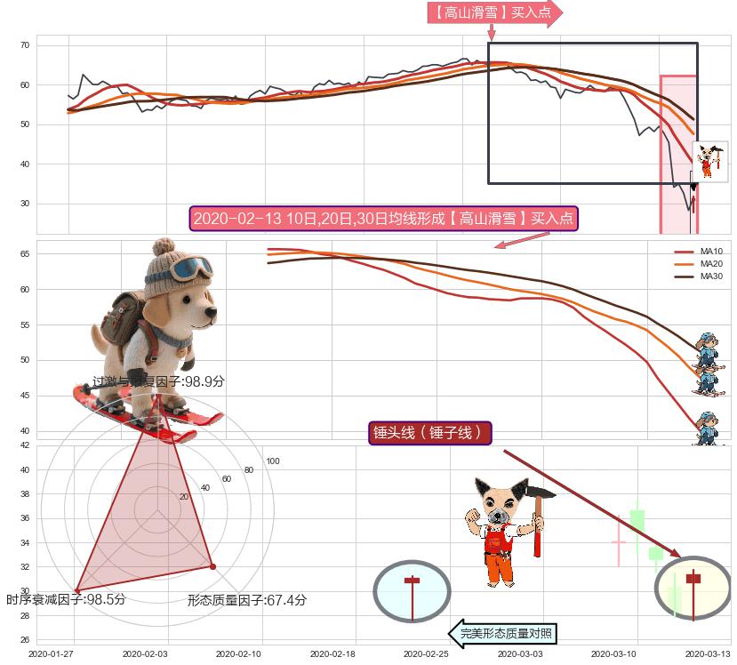 | 3 🅚:【高山滑雪】买入点 ➕ 📐:下降对称三角整理下跌目标target已达成:猜想强支撑位临近,预期反弹上涨(均值回复) ☞ 看多信号 ⇥ 【均线】交织【图形】⇥ 综合量化分数: 58 | > |