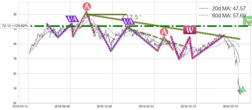 ♘ 阻力价格位72.12,可信任强度99.00%,距离最后交易2020-03-13形成的收盘价格31.38相差 +129.82%