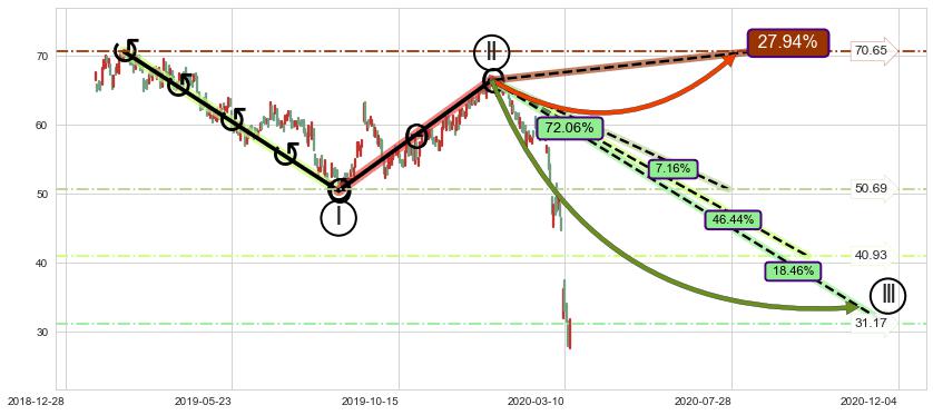 ➣ 大趋势循环浪继续向下概率72.06%