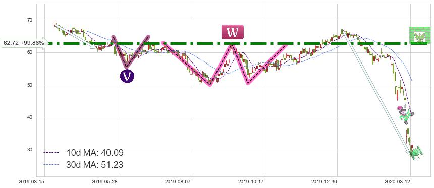 ♘ 阻力价格位62.72,可信任强度91.25%,距离最后交易2020-03-13形成的收盘价格31.38相差 +99.86%